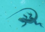 A very warm, windy, Spring day and the Dog Lizard wars have recommenced. Lizards at the bottom of our pool (one at the north end, one at the south)